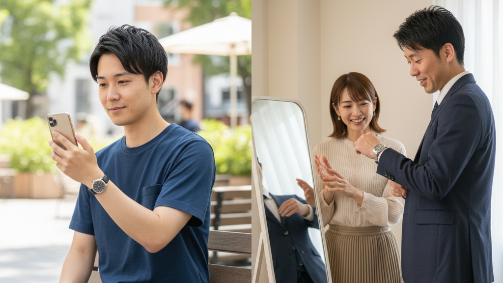 第三に、ペアウォッチという選択です。お揃いのものを身に着けることに喜びを感じるカップルも多い一方で、ペアグッズに対して気恥ずかしさを感じたり、自分のファッションスタイルに合わないと感じたりする男性もいます。相手の意向を確認せずにペアウォッチを贈ってしまうと、「自分の気持ちを押し付けられている」と重く受け止められてしまうことがあります。