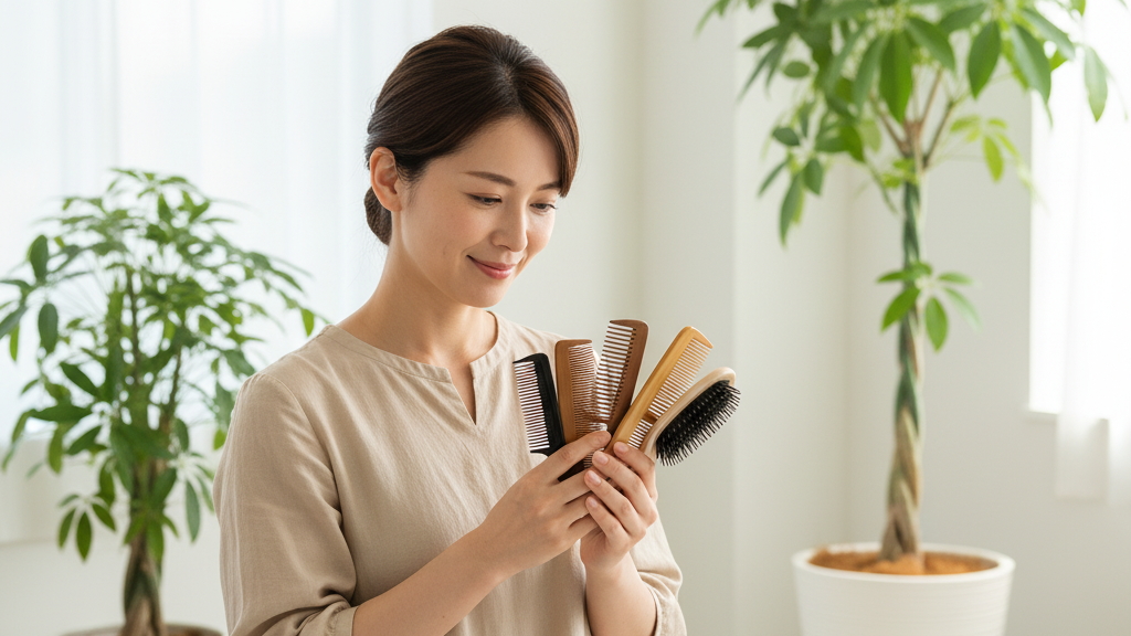 ナイロン・ポリエステル | 耐久性が高く、水洗いも可能で手入れが簡単。頭皮への刺激が心地よいタイプや、速乾性に優れたタイプなど機能が多様。 | 静電気が起きやすいことがある。天然素材に比べると髪への優しさは劣る場合がある。 | 手軽に使えるブラシが欲しい人。お風呂場などで使いたい人。 |